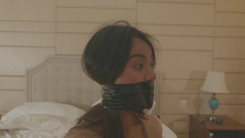 陈松将捆绑王娜嘴巴的那一套照葫芦画瓢的用在王冉头上,然后把王娜的肉色袜子和王冉的黑色袜子对换。