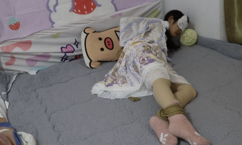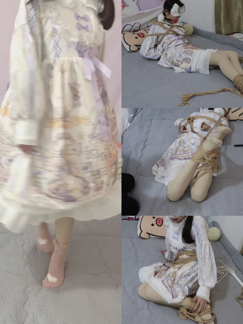 可是菲然妹妹力气小呀,而且蒙着眼也看不见东西,只能苦苦挣扎,菲妹儿后来说自己说还是带上口球吧,这样更有些感觉~