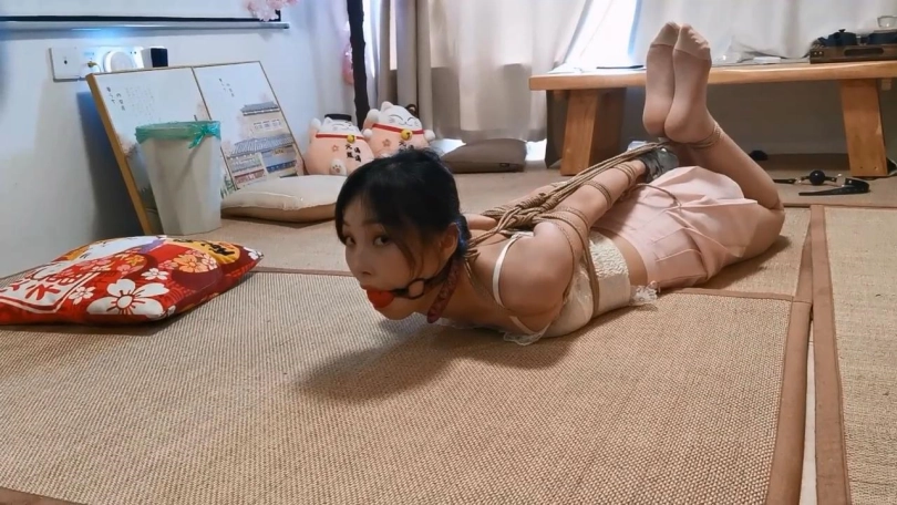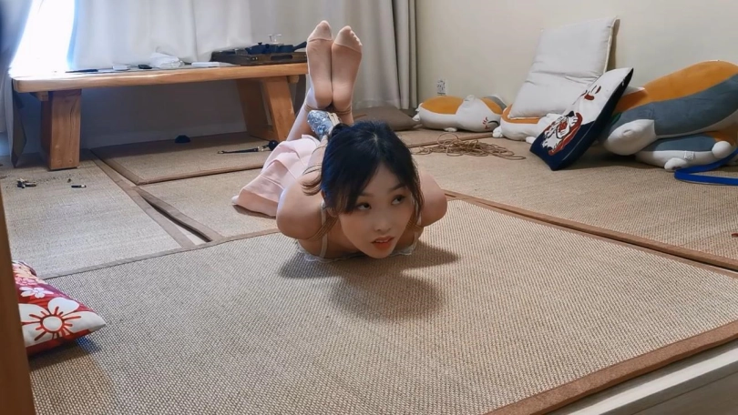 舞蹈生美少女雨琪,小吊带的搭配这个角度大家有没有觉得非常像周冬雨。而这次考验雨琪的是她从来没尝试过的2小时超长时间直臂驷马放置,并且鉴于雨琪在放置过程中多次自己解开绳结,这次用胶带包住了双手使她完全没有挣脱的可能性,绑的也是非常紧雨琪翻身都十分困难,只能看着自己的口水把榻榻米都打湿一片了。