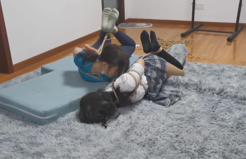 诗诗拍到一半,她的小姐妹突然打电话要过来看一看。既然送上门的话,当然是一起绑了呀~~~~。解不开的话,还要加挠痒痒哦