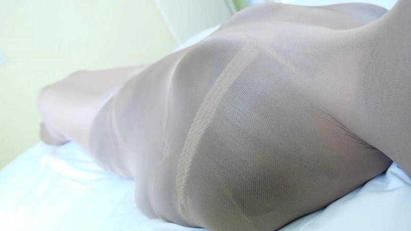 到了之后女主角发现门没关,于是走进去,发现有个人被绑了还套在丝袜里面,于是她赶紧过去松绑。