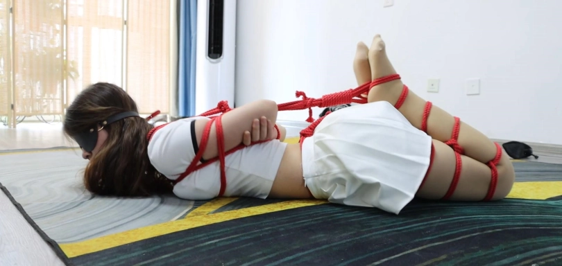 清清是一家公司的大小姐,这天因为分配下去制作的资料没有按时完成,很生气的在训斥着负责人员。我们暂且叫他阿意吧。而清清也是交代最多只能在给阿意半天时间,不然将会对他进行处罚。阿意在离开之后嘴上便不服气的说:“一个小屁孩也敢在教训我,要不是因为你是老板的女儿,轮得到你对我大呼小叫的,算了不去想这个了,看来得去放松放松了。”等到下班阿意迫不及待的来到一家俱乐部,而俱乐部也是会为前来的客人提供捆绑服务。就在阿意要走进俱乐部的时候,他看到了一个熟悉的背影,不禁疑惑的说:“诶,那个人怎么那么眼熟啊,怎么那么像大小姐了,不对不对看来是这段时间工作压力太大了,人家一个大小姐怎么会喜欢这种游戏了,还是先去放松放松吧。”而阿意确实没有看错,那个人确实是清清,虽然是公司的大小姐,但是也有着不为人知的特殊爱好,因为身份的特殊所以她也害怕身边的人知道自己的爱好,一次偶然的机会知道了这家俱乐部,所以偶尔也会来到俱乐部体验。屋内站在清清面前是俱乐部的工作人员,工作人员礼貌的问道:“清清小姐这次想要体验什么方式了。”清清:“那就驷马捆绑吧。”接着工作人员便将清清后手捆绑起来,绳索围绕胸前将她的胸部勾勒出完美的曲线。紧接着将大腿与小腿折叠捆绑起来,很快就被驷马捆绑起来,变得无法动弹。最后在拿出一双丝袜,缓缓的塞入清清的樱桃小嘴中,贴上胶布戴上眼罩,留下独自享受的清清。而同处俱乐部的阿意因为看到的身影此刻的心思完全不在面前被紧紧捆绑起来的女子身上,他要确定他看到的人是不是大小姐,便早早离开了俱乐部,在俱乐部外等待了起来。清清在体验完释放了一下之后也心满意足的离开了俱乐部。没有防备的她走出俱乐部的那一刻,她不知道的是自己的身影行踪已经完全被阿意看在了眼里。在确定自己看到的人确实是大小姐之后,阿意的心情大好,心里不由得生出了一个完美的计划,不由得说:“没想到那个人果然是大小姐啊,嘿嘿这下变得有趣起来了!”