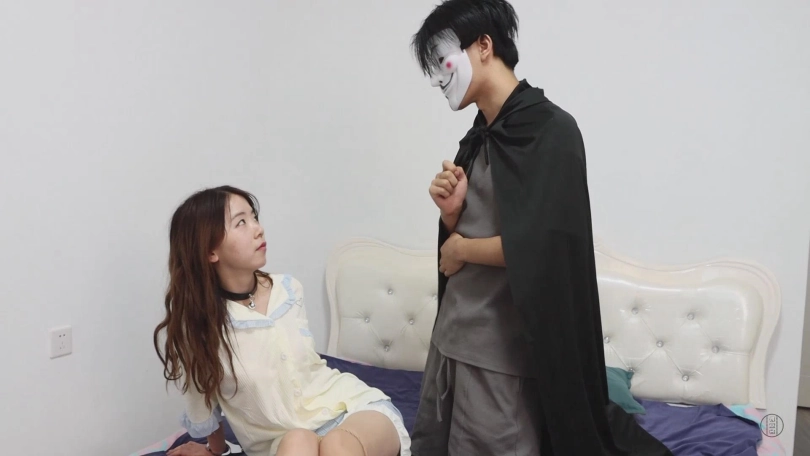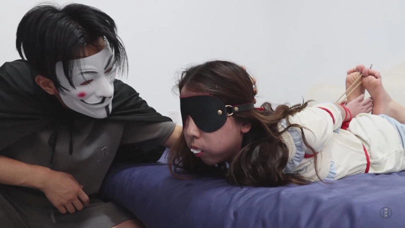 带着面具的神秘人早已潜伏在门外,等小清睡熟后便悄悄进入小清的卧室,抚摸小清的脸颊,不知情况的小清被突如其来的触摸惊醒,疯狂的挣扎想要摸到床上的手铐钥匙,然而神秘人先行一步将钥匙拿走,小清此刻肯定非常后悔,为什么自己要把自己绑的这么紧,堵嘴的袜子塞得如此的满,让她无法呼救。