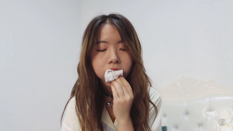 小清:果然特意准备的原味袜子味道很大,用来堵嘴真是太刺激了,嘴里又咸又涩,还有一股汗酸味儿,不知道留到最后的冰冰袜味道怎么样?虽然一会儿要睡觉了,但还是穿着它继续捂出汗吧。