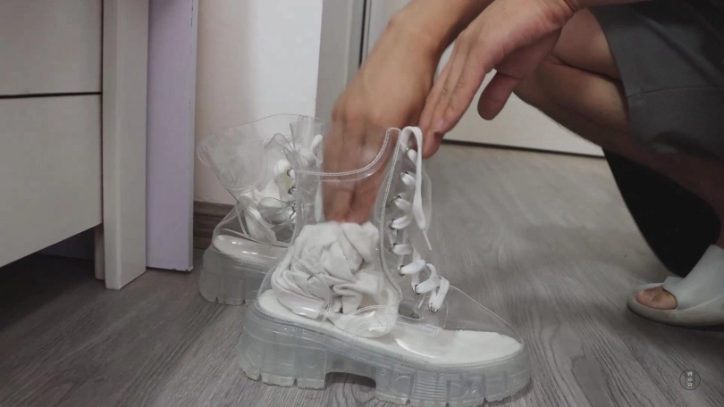 小清迟疑的点了点头,然而就是这份迟疑让神秘的主人决定给她一些惩罚,神秘人将之前用过的原味袜子全部塞进一只透明马丁靴里,然后将靴口强行扣在小清的鼻子上,强行让她闻自己的原味袜子和靴子的味道,之后似乎还不够过瘾一般,神秘人将一只帆布鞋里塞进原味袜子后扣在小清的鼻子上,用手摁着小清的头让她将脸尽情埋在鞋袜之间,可怜的小清只能被主人强制气味控制。