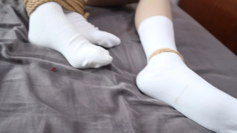 男主的手没有停下 两位连缚少女的叫声也嗯嗯呜呜呜的叫声一直不断 直接把两只绑在一起的脚翘到天上去了!两个少女的内裤都走光了!