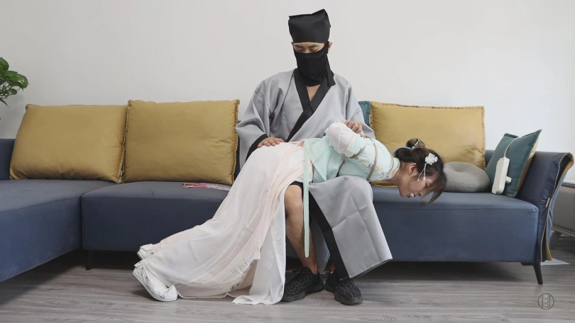不过小扇还是在途中掉落过一次,以此为由,云瑶向巩生讨要了一次惩罚,巩生将绣着一对蝴蝶的白色手帕塞入云瑶口中,然后将她横放在自己的膝盖上,大手一次又一次的抽打着云瑶的臀部,自然,这并非什么惩罚,而是一种示爱的表现,巩生故意打了七次,也叫云瑶数了七次,七次代表着七月初七,便是他们相遇的那天。