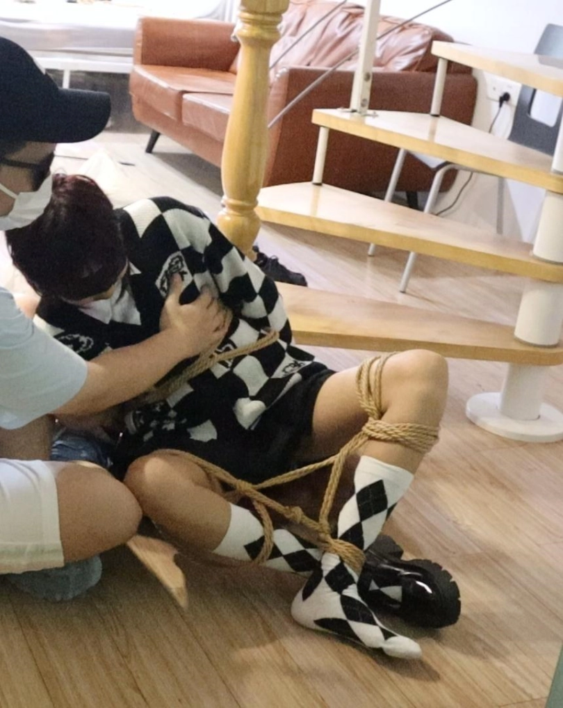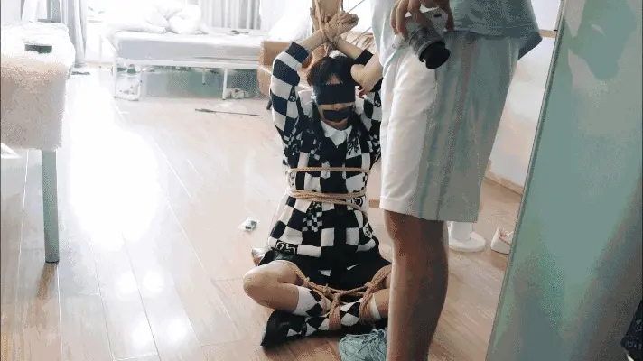 只听到女孩嘴巴被粘上胶带痛苦的呜呜呜声以及想挣扎却被绳索紧紧固定的无助