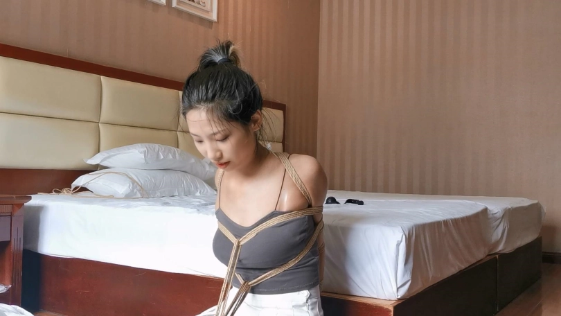 把口环换成了大口球,口水更多了。把小松直臂紧缚跪在地上,身前加一道绳子牵引,如果小松想直起腰来就得忍受绳子勒紧丰满的胸部,最后再给她戴上一个大号口环,放置在宾馆里,小松本来口水就挺多,在大口环的作用下口水哗啦啦的往下流,把裙子都打湿了。
