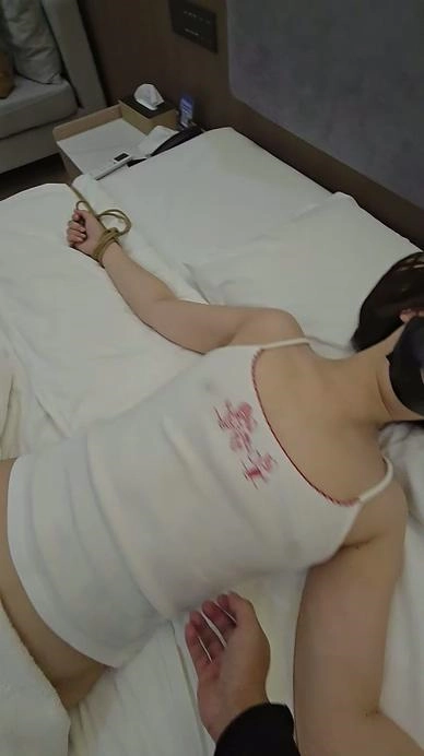 › 【小黑】嘴里塞着袜子,胶带堵嘴蒙眼,床上大字缚,一直呜呜说话,听不懂说的啥,玩具放在最敏感地方,放置反复折磨,素人真实反应。