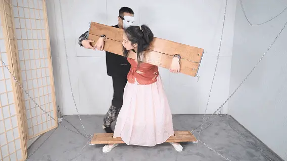 › 【撒琅制造】绳模沐小雨古装木枷固定,即兴发挥小剧情--戒尺、鞭打、TK