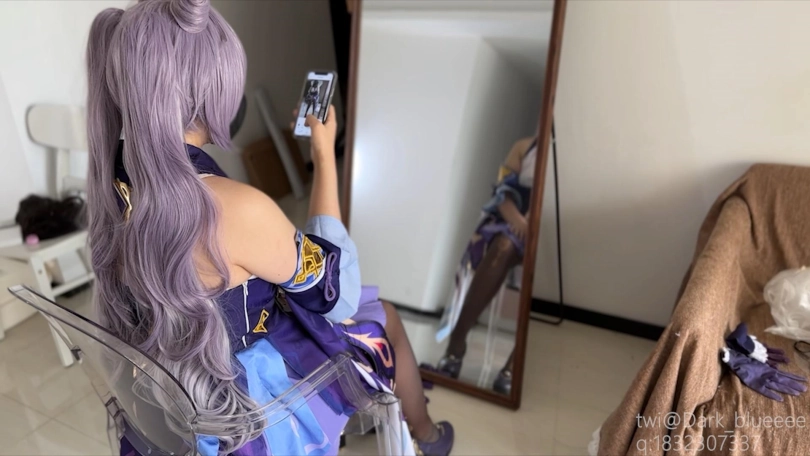 模特雁一cos刻晴进行捆绑,双手吊缚口球蒙眼站立,然后开腿在椅子上用道具强高,正片包含放置双视角