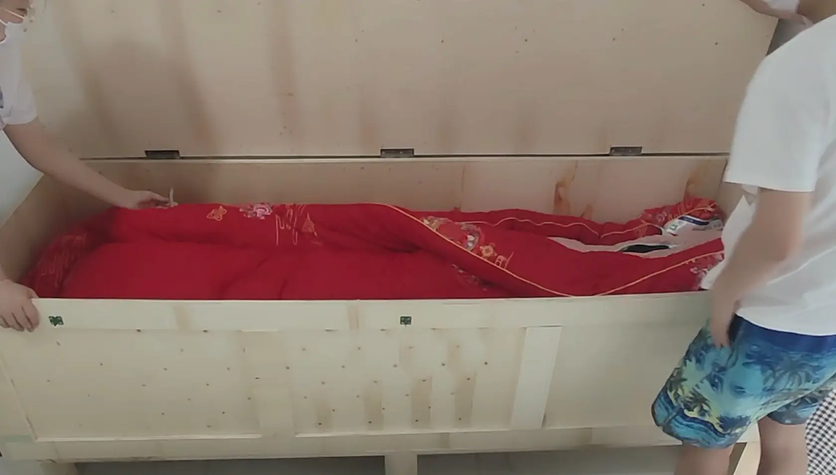 粉丝来体验棉被全包,结果被CC学姐和学弟勒索~[X_X]逼问银行卡密码。粉丝连续3次说出了错误的密码~让学弟白跑了好几次,结果生气的学弟要求学姐,一直关在箱子里边,不行出来!当学姐永远的床~里边超级舒服~学姐很喜欢新的床~最后说出了最后的密码~但是学姐怎么可能放过他,直接封箱,准备晚上扔到海里边~