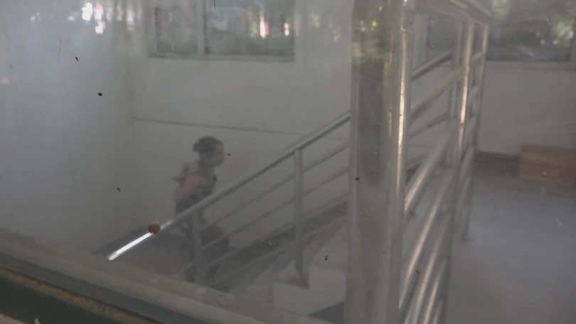 出口都被锁住了,歹徒也渐渐向她逼近......