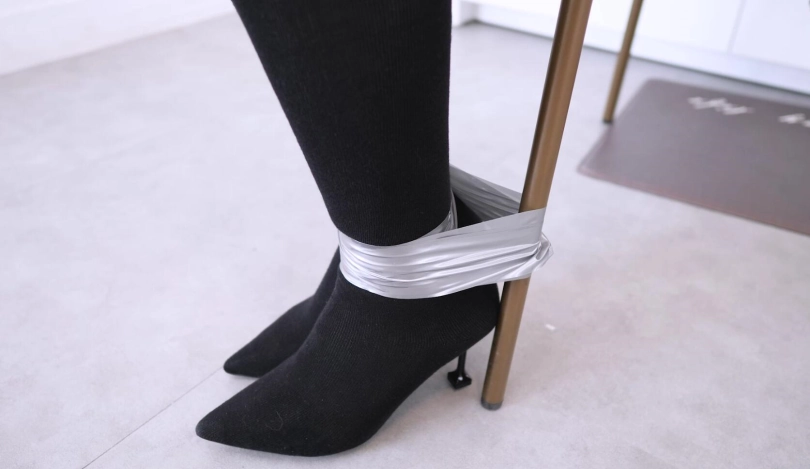 › 【4K映像】黑色长靴袜靴,超薄肉丝,双倍快乐,锁住酸味,银色胶布