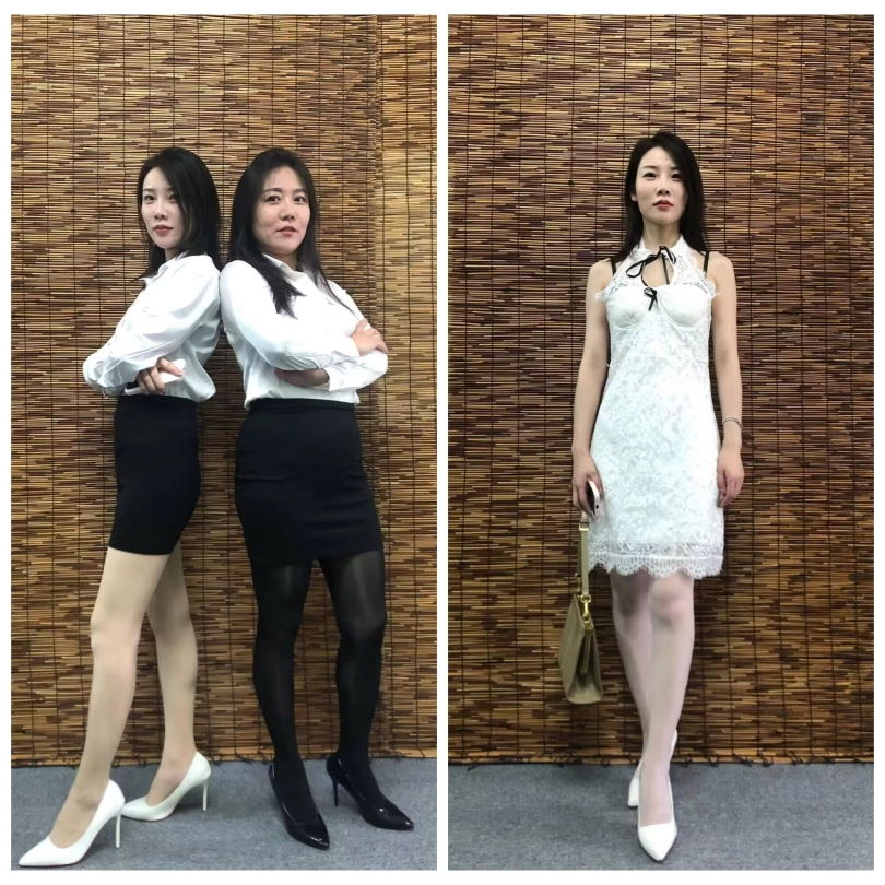 模特为柳洋(一含)和李然,李然姐依旧是黑丝OL装扮,柳洋则换成了瑜伽裤里丝,一黑一白相得益彰。