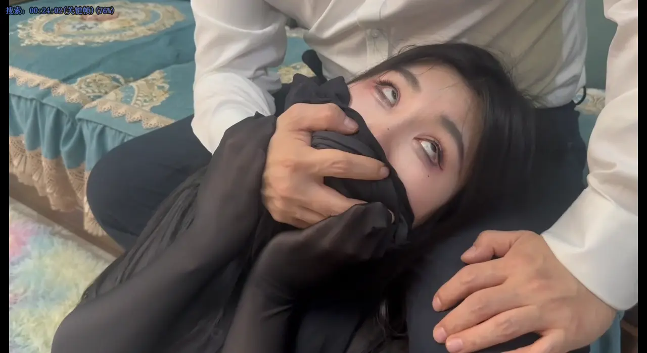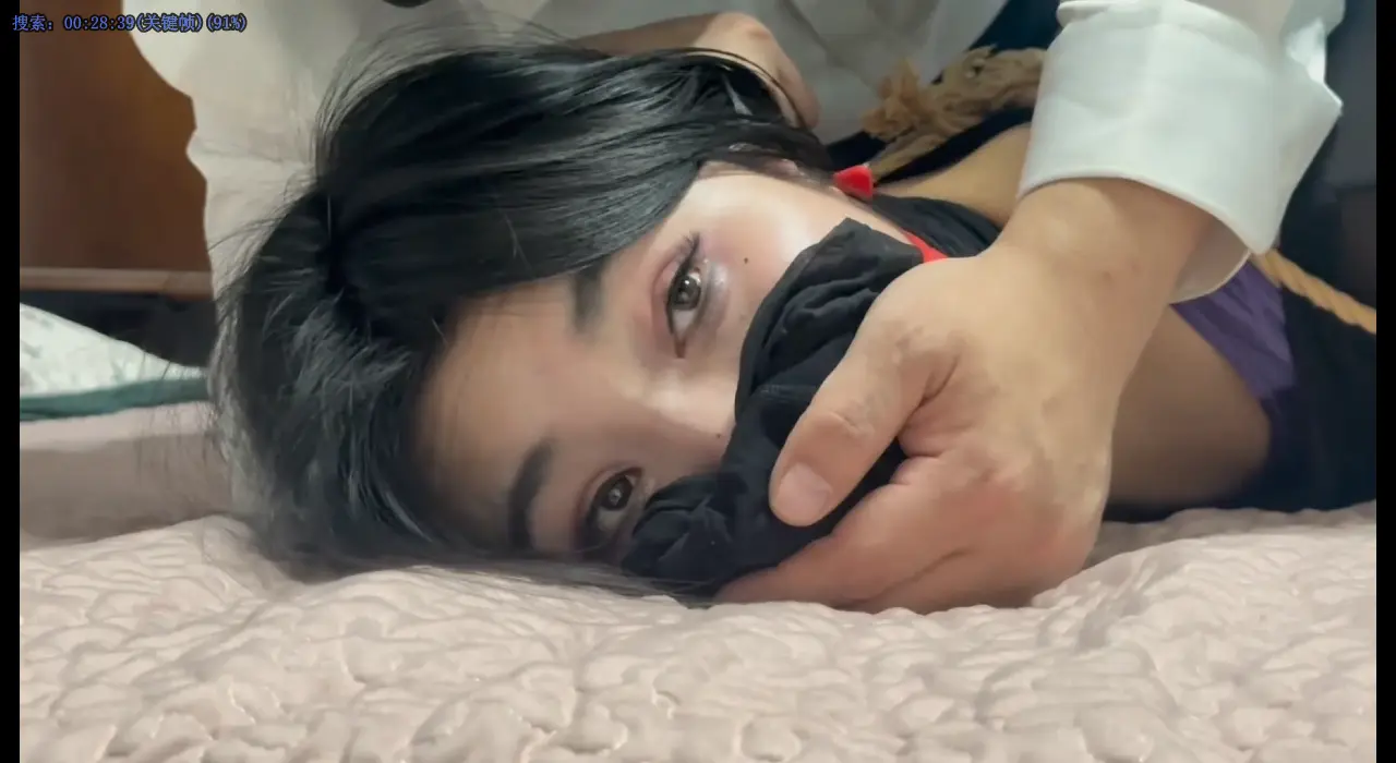 醒来后晃晃悠悠走到门口想跑,被男主发现后追上,丝袜勒住脖子后再被黑丝捂口鼻,挣扎一番无用后晕倒。被男主拖回房间床上捆绑和反复丝袜捂口鼻迷晕挣扎。