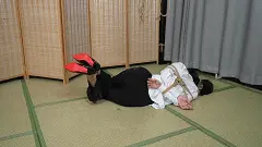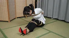 穿着红色高跟鞋的她不断的扭动着被绑着的双脚,肉丝玉足在绳子的衬托下显得那般格外美丽!此时她的上身穿着这白色衬衣的她正被歹徒绳索缠绕,双手被反绑在身后,使得她动弹不得。“呜呜呜呜 ~!(你要干嘛~!)”可怜的求救声也被唤作一阵阵呜咽,而她的双眸也被眼罩封闭的死死的,这不由得让她在地上绝望挣扎着......