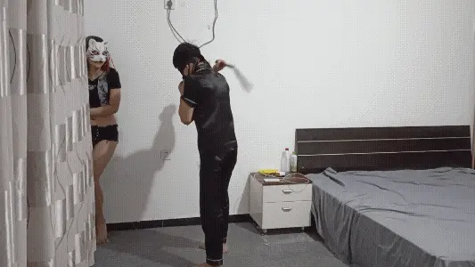 主人带着两只小狗在家做一些特别的圈内游戏,分别用不同的工具,由主人蒙眼凭听觉去抓住躲藏的小狗,小狗躲藏的时候,脖子上的铃铛会跟随小狗躲藏的脚步一步一响,主人会跟随铃铛的提示,准确的找出躲藏的小狗,对小狗进行惩罚。