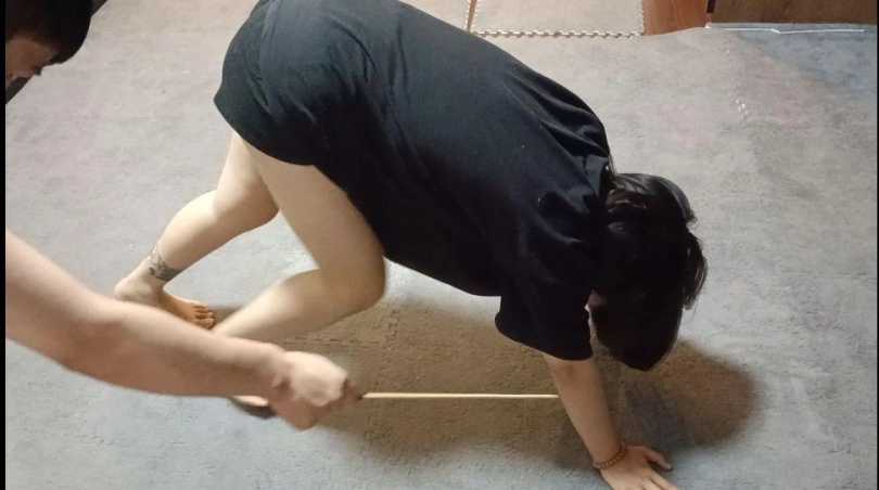 小馨因为犯错了,所以被体罚了,一套接着一套的惩罚,也不知道小馨能不能坚持住,体罚做的不标准那好我们用刑法来代替,姿势做的不标准,那就教棍来纠正动作