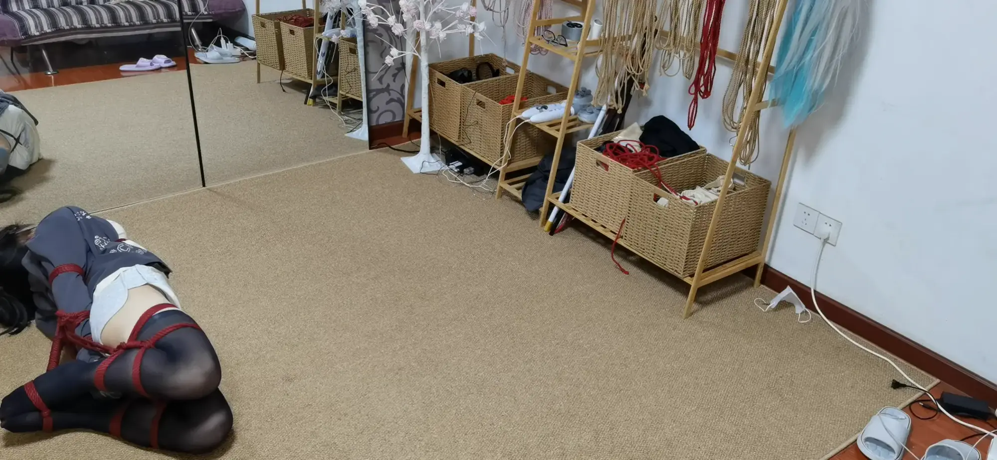 小m真的是有一套自己的审美,又是小短裤又是紧身小外套,露着个T恤边边在外面真是奇怪,那个大肉腿加上黑色长筒袜还不错,没事一会加上绳子就好看了,小m先是自己捆好了折腿接着就被半强迫的捆上了后手观音,然后在镜头面前骚姿弄首,任由他挣扎也无济于事,什么?后手已经适应了?那再捆个直臂给小m难受难受,既然被捆上了那为何不让大伙看看小m的真容呢,真是好奇呀,把他的口罩摘下来看看吧,work out怎么嘴巴也被塞上了,这么钟意玩那就陪你玩啊,给你把手手也裹上胶带,再把你的腿跟手臂也连上,看看你挣扎的样子吧,真是涩情,你就在这里沦为活动的家装吧。