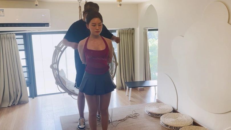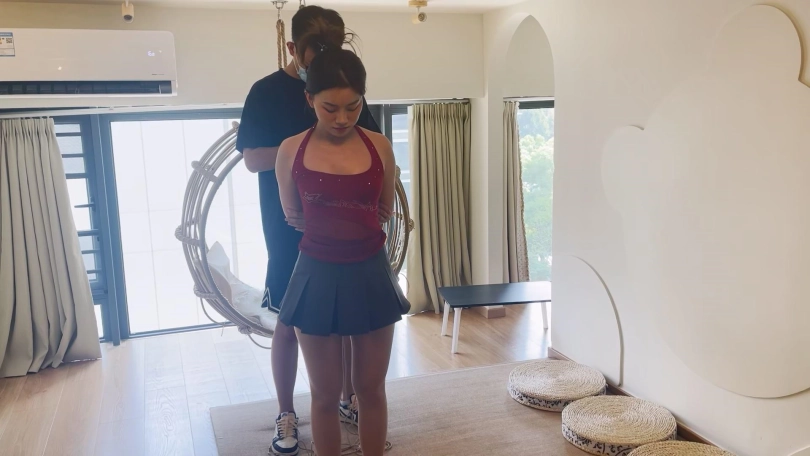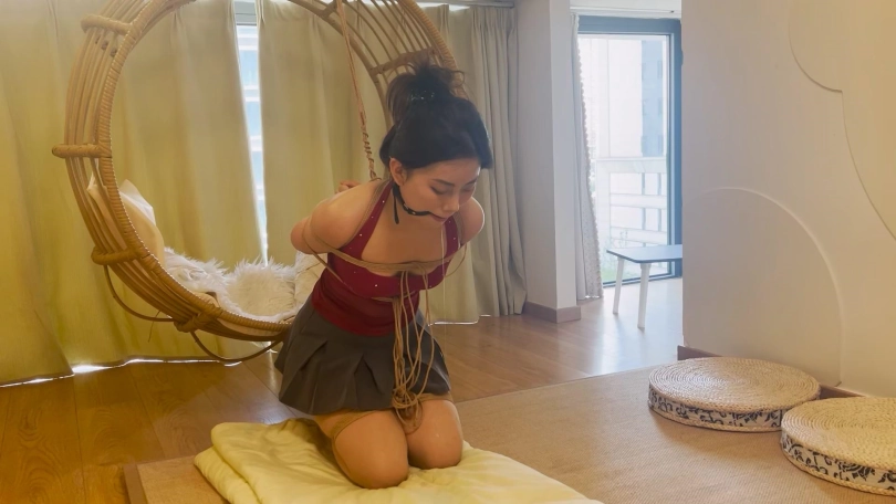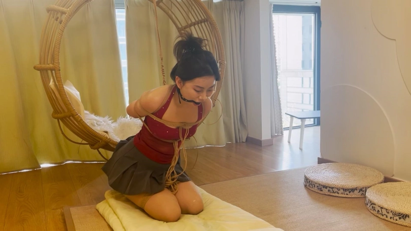 前几次拍她看她很耐绑,这次直接让她挑战90分钟的捆绑放置,还是一个难受的跪缚姿势,妹子绑之前还觉得自己坚持不了,但是放置起来就没有选择了,妹子难受的想直起腰也直不起来,口水流了一地。