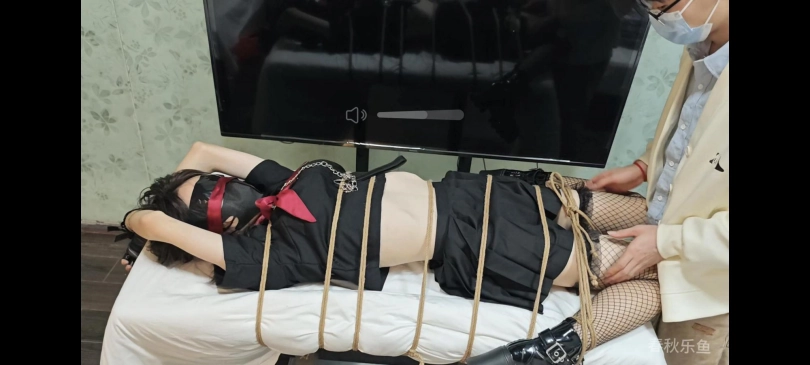 犯错的小m被绑在桌上,想挣扎挣脱,但被制服了,固定在适当的位置,双手拉过头顶绑好系在桌下,她的膝盖和脚也紧紧地绑在桌角两边,玩弄小M细腰,棒棒寸止边缘刺激让小m想发射但又发射不了,脱鞋子挠痒痒,放置,眼睛被蒙上,戴着口罩,小嘴塞着袜子,服装:水手服,网袜,手套。