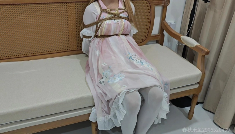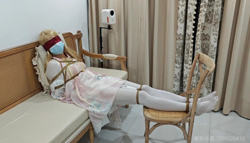 在沙发上绑好之后,M尿意来越强烈,刚想说话就被我堵住嘴蒙上眼戴上口罩。