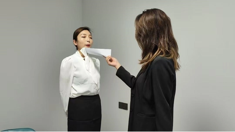 晓倩是一家公司老板,喜欢调教女M,这一天找借口把佳佳训斥,逼迫佳佳在办公室直接下跪,[X_X],高跟鞋踩踏,最后带上项圈,让佳佳直接在瓷砖地板上爬行,疼的佳佳叫声连连,带到调教室,把佳佳栓到架子上,五花大绑,项圈勒的佳佳喘不过气来,泪流满面,最后一直哀求放过,女老板那肯轻易放过,强迫佳佳跪好头按地,皮鞭抽打,[X_X],打胸,经过一系列的调教,最终把佳佳成功的调教成一名小母狗,乖乖的跪在女老板面前,这次是晓倩和佳佳联合演出的女女调教大戏,非常精彩,大家喜欢的话接着拍续集,晓倩会穿一身黑色胶衣,尽显女王本色,佳佳穿一身红色胶衣秒变小母狗,听从晓倩深度调教。