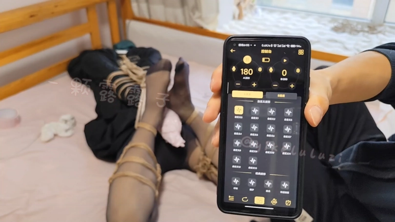 跟踪入室迷晕捆绑。醒来就被绑成驷马模样,身上被贴了郊狼电击200+,只要动动手就能让其惨叫。之后变换上身姿势,后手观音绑在阳台露出吊缚放置,夜晚的窗户边,任何一举一动都能被楼下和对面看的一清二楚,非常羞耻。郊狼电击av棒玩弄[X_X]喷出不明液体,就这样,露露昏昏沉沉的度过了这一夜……