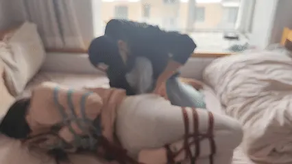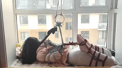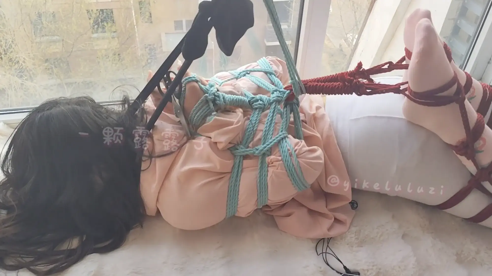 露露白天穿这身粉色卫衣和白裤袜去了健身房露出,回到家就被绑成后手观音驷马,放置电击哀嚎不断