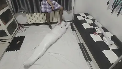 小M被CC胶带全包后,疯狂榨汁玩胸,看看这个小M是如何挣扎的把~