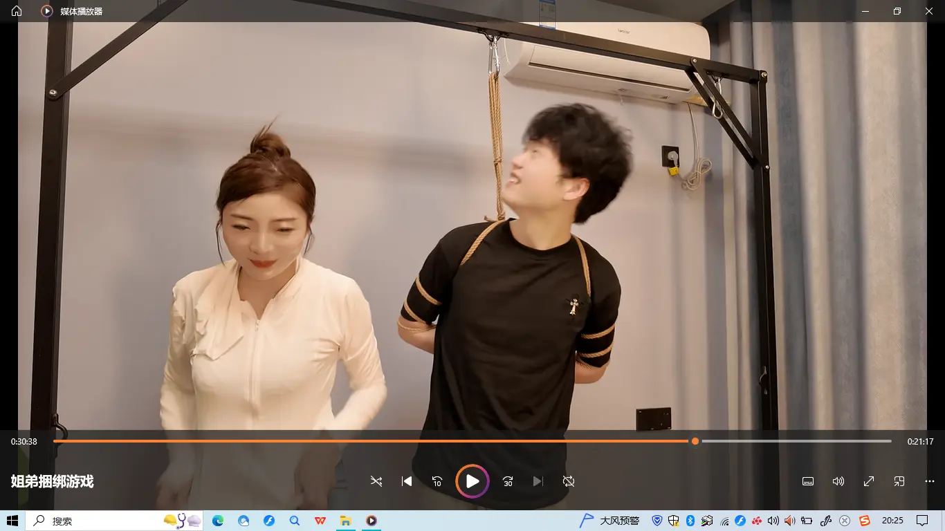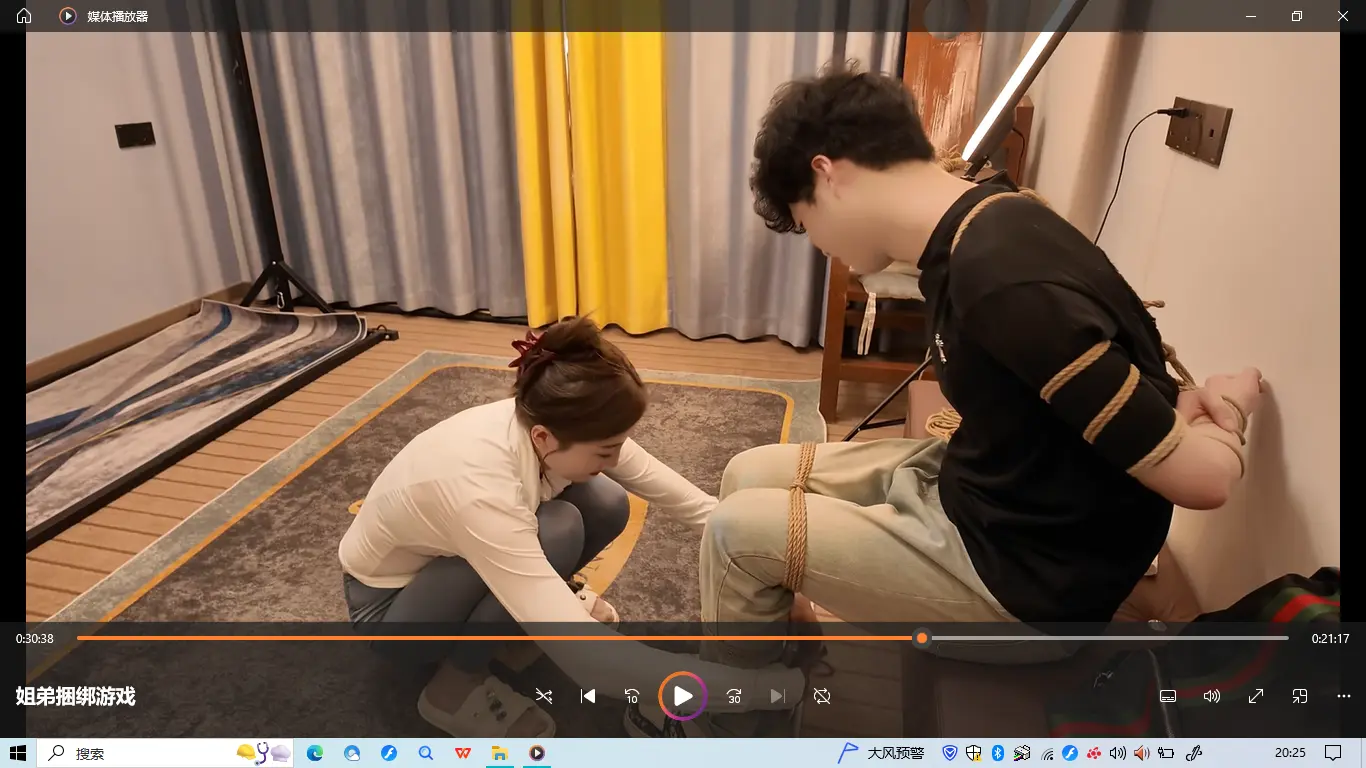 姐姐下班回家,弟弟赶快给姐姐开门,拿拖鞋,姐姐坐沙发上面看快递,到镜子面前欣赏了一下,然后练了一会瑜伽,坐到沙发上=上面自己尝试着用布条勒嘴,原来姐姐是一个捆绑堵嘴爱好者,先用胶带把嘴巴粘上,然后用带上口罩,自己把手铐带上背铐,然后模仿发出呜呜的声音,正觉得不错的时候,弟弟出来了,高兴的说,姐姐,你想玩在不叫我呢,说着不由分说,就把姐姐的腿捆了起来,用把嘴换了个堵法,摸着姐姐的脸夸姐姐真漂亮,接下来操作更是惊人,把姐姐一个人放置到地上,自己跑出去玩了,把钥匙把到沙发上,让姐姐自己想办法挣脱,还好姐姐练瑜伽,经过长时间尝试,把腿从下面套过来,终于挣脱了束缚,等弟弟回来,姐姐把弟弟骗到面前,一个擒拿就把弟弟按倒,带上手铐,吊起来一顿收拾,最后在弟弟不断的哀求保证下,放开了了,没想到反转来了,弟弟竟然又给姐姐来了个反杀,把手直接后手捆绑吊了起来,皮鞭,TK一顿收拾....收拾的姐姐娇喘不断