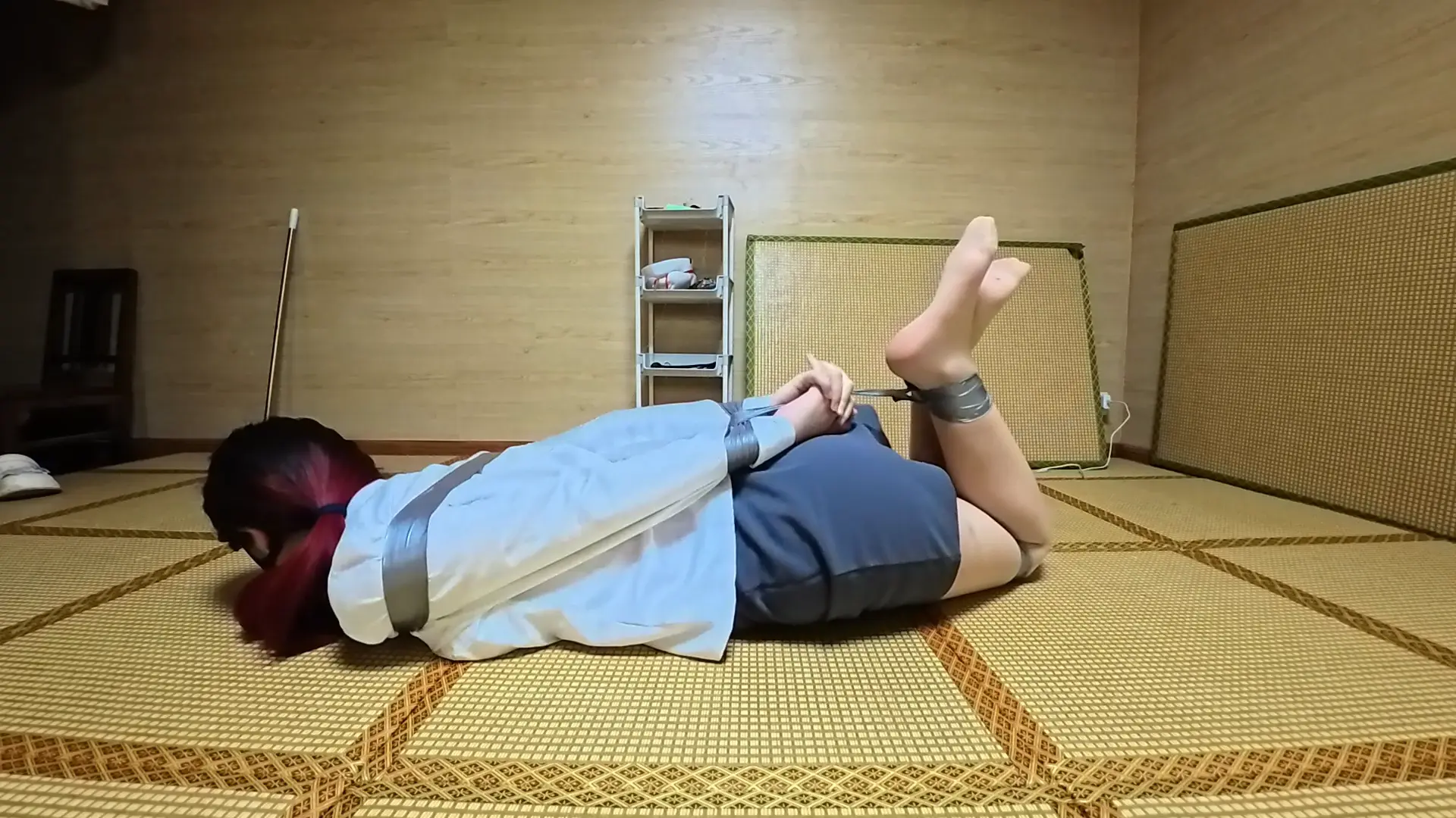 › 【渎竺】【川川】欧美图复刻!OL职业装,肉色丝袜银色胶带驷马缚!