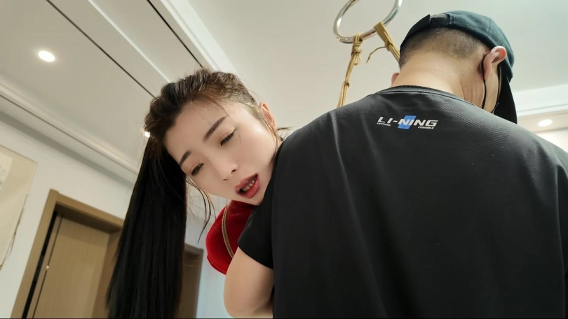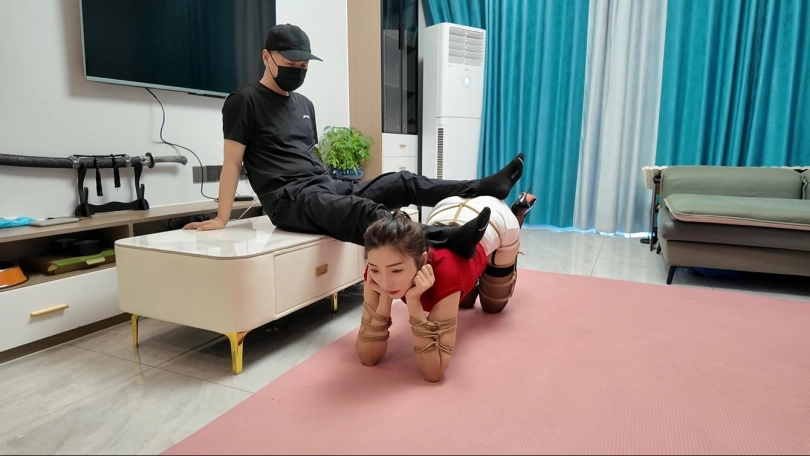 客厅绑好了一只狗狗,太漂亮了,先让她爬几圈,伸伸舌头,叫几声,真是特别乖,跪在脚下当脚垫,刚学会了一个后高手新绑法,那她练练手,押解走走、不过瘾,还是吊起来玩吧,没想到叫的特别动听,这声音,谁能抗拒的了