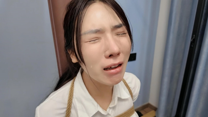 客户要求必须加七块砖,并且要求必须给十一虐哭,事先没有给十一说客户的特殊要求,先哄上老虎凳,绑上再说,一块一块的加,中间加挠脚心和鞭打,刚开始挠脚心十一笑的可开心了,到第六块砖的时候喊疼,马上就成功了,现在绑着呢,可是由不得她了,继续加,没想到加到七块砖喊疼还是没有哭,用力一按腿,这下可好直接哇哇大哭,赶快特写拍摄,接下来一顿好哄
