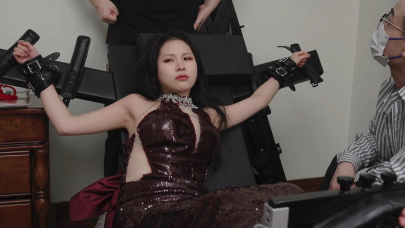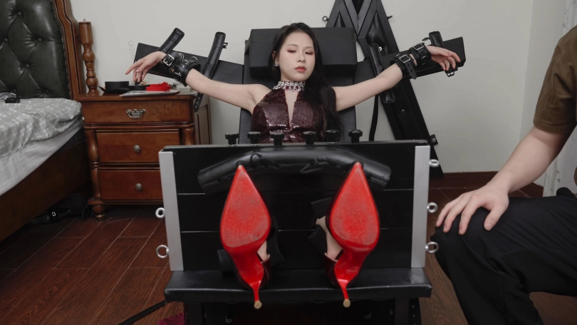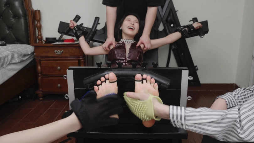 视频内容:随后我把艾米绑在束缚椅上面,她超怕痒所以很抗拒。