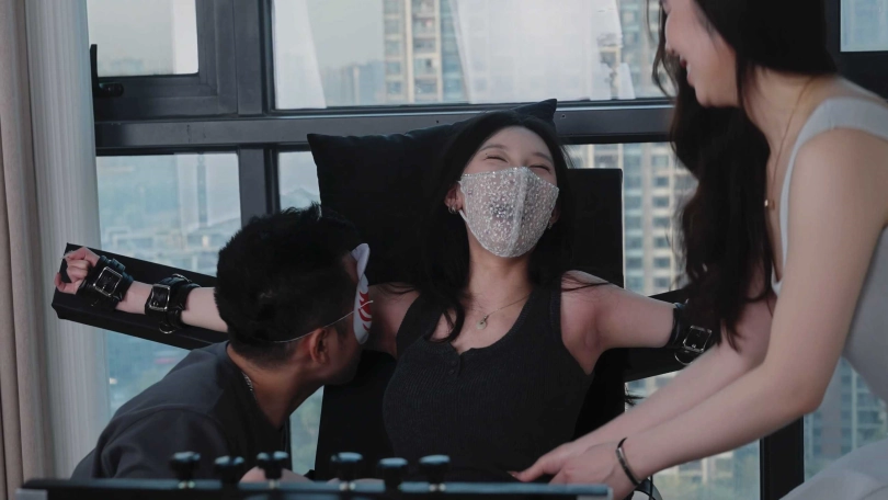然后今天的ee虫虫小姐姐到了,把她绑起来后,悠悠开始对她痒刑折磨。虫虫其实挺怕痒的,不过悠悠手法有点青涩。