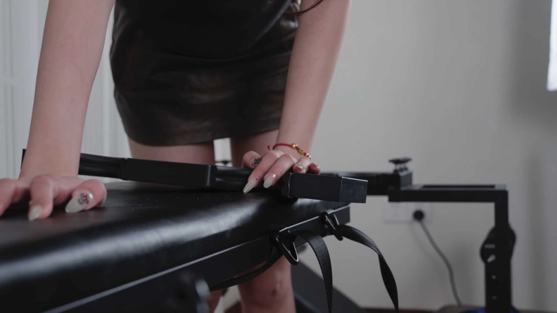 回来后,悠悠介绍了工作室的几个刑椅,尤其重点介绍了新道具跪趴TK刑椅,还亲自趴上去示范。