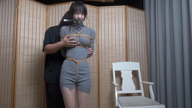 嗷嗷被迷晕后,大衣内捆绑,股绳,高领毛衣卷上去口球
