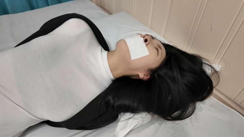 小韩是个爱运动的女生、这天在家整理着自己的骑马装备,床上摆着棉纶丝袜,白色口罩和黑色西服,床边立着马靴,她把装备摆放在床上,换掉脚上的短肉丝,穿上马靴,带上白色口罩,这时候有人敲门,小韩下意识的问:谁呀,门口回复:快递,小韩出去开门,打开房门闻到一股清香,晕倒在地...