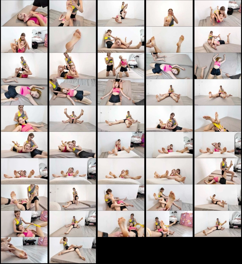 Emma (Yellow top) completely dominates and destroys poor Lizy with various wrestling moves and humiliates Lizy.