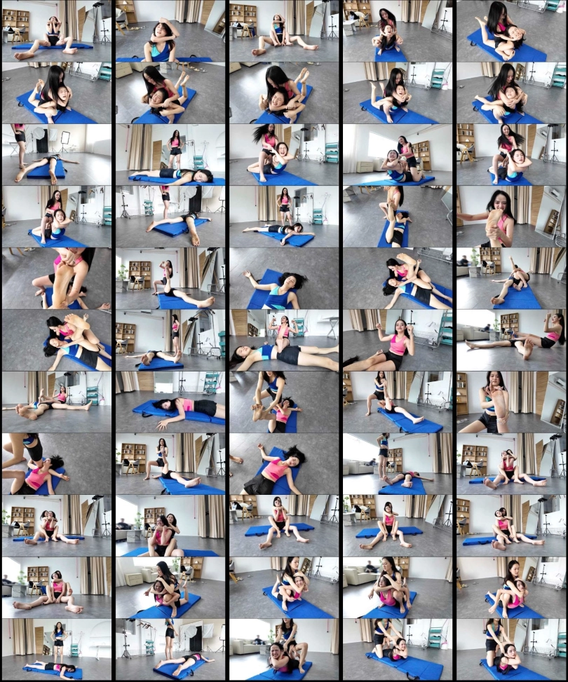 2 new Rookie, Nina (Pink top) and Sasha fight each other with various wrestling moves and knock each other out cold!