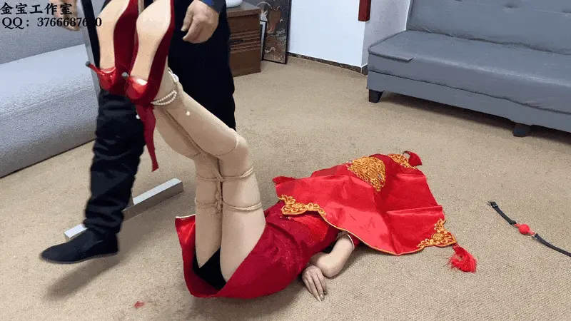 飒爽的女匪小姐木子被扒掉了马甲衬衫长靴换上红色短旗袍和高跟鞋,吊起的双腿、层层的堵嘴、蒙脸的盖头……极致的凄美绝望,而二叔也终于肆无忌惮地伸出魔爪……大红色的婚服和雪白的肌肤被绳索勒出深痕,交杯酒与泪水浸湿了堵嘴的丝袜,细高跟让被缚美腿的挣扎显得更加无力,少女苍白的脸上除了死灰般的屈辱绝望,还有视死如归的坚定,可惜事到如今求生不得求死不能……
