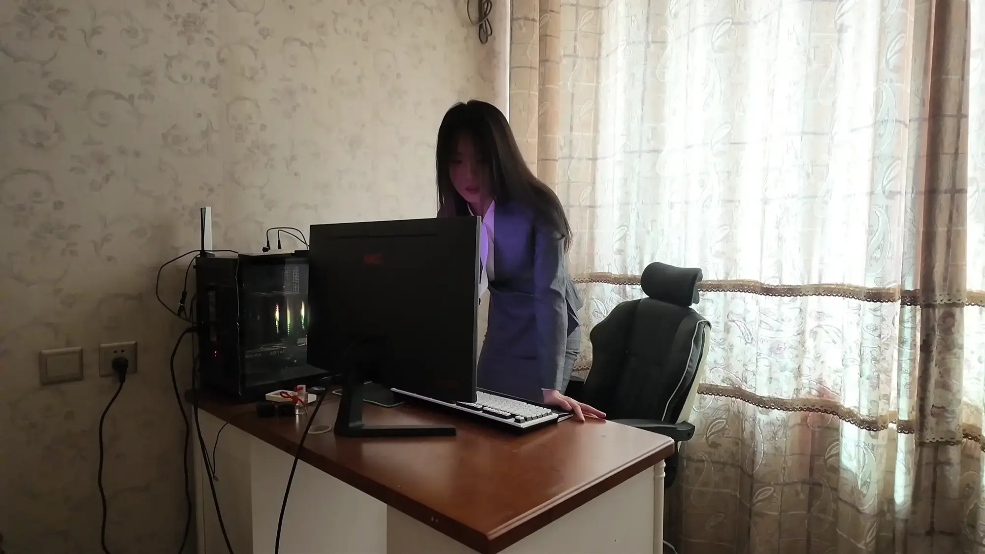 这天晚上,卉萱走进老板办公室。