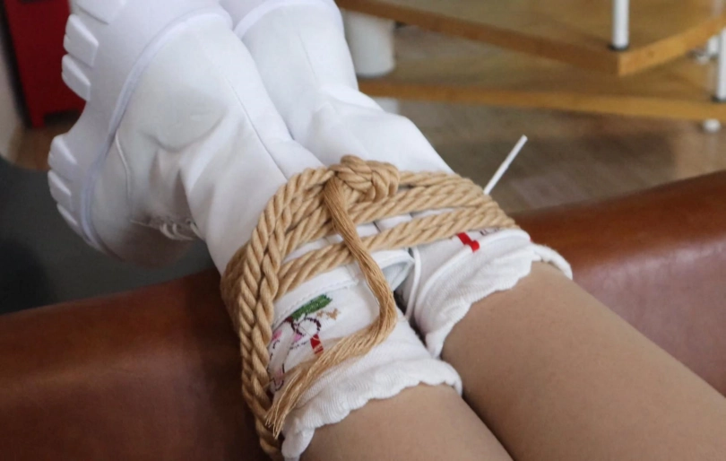 当靴子被脱下来 小B妹妹整个身体在男主腿上 敏感的身体被侵袭 只能甩动双腿来逃避折磨