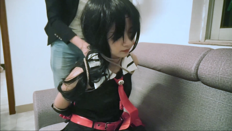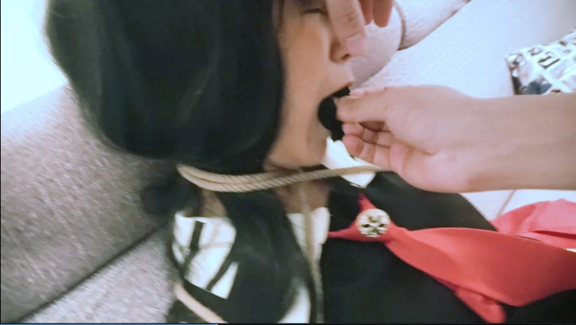 老黑先将赤瞳捆了起来,发现她一直在挣扎,不堪其扰的了老黑一把脱下赤瞳的黑袜,塞进了赤瞳的小嘴之中。