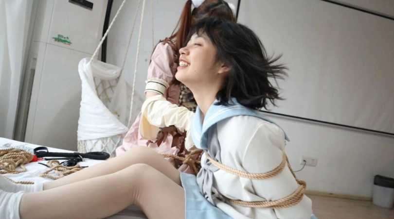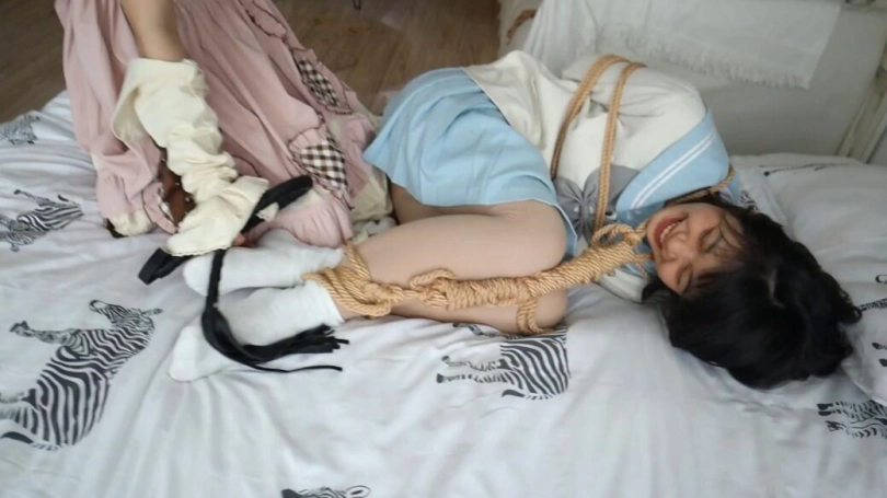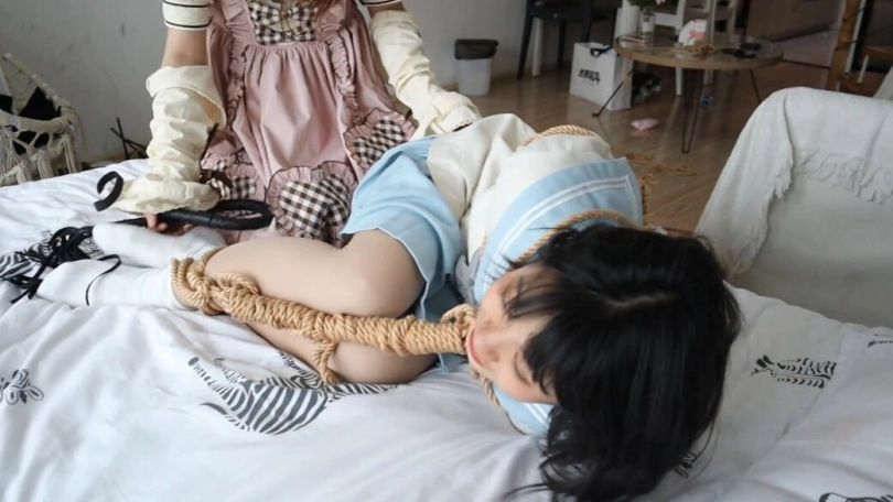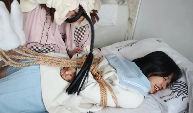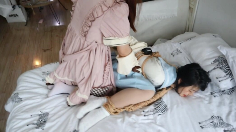 邱凝醒过来发现自己被海老缚,惊讶着问姐姐,姐姐你会的绑法好多呀,