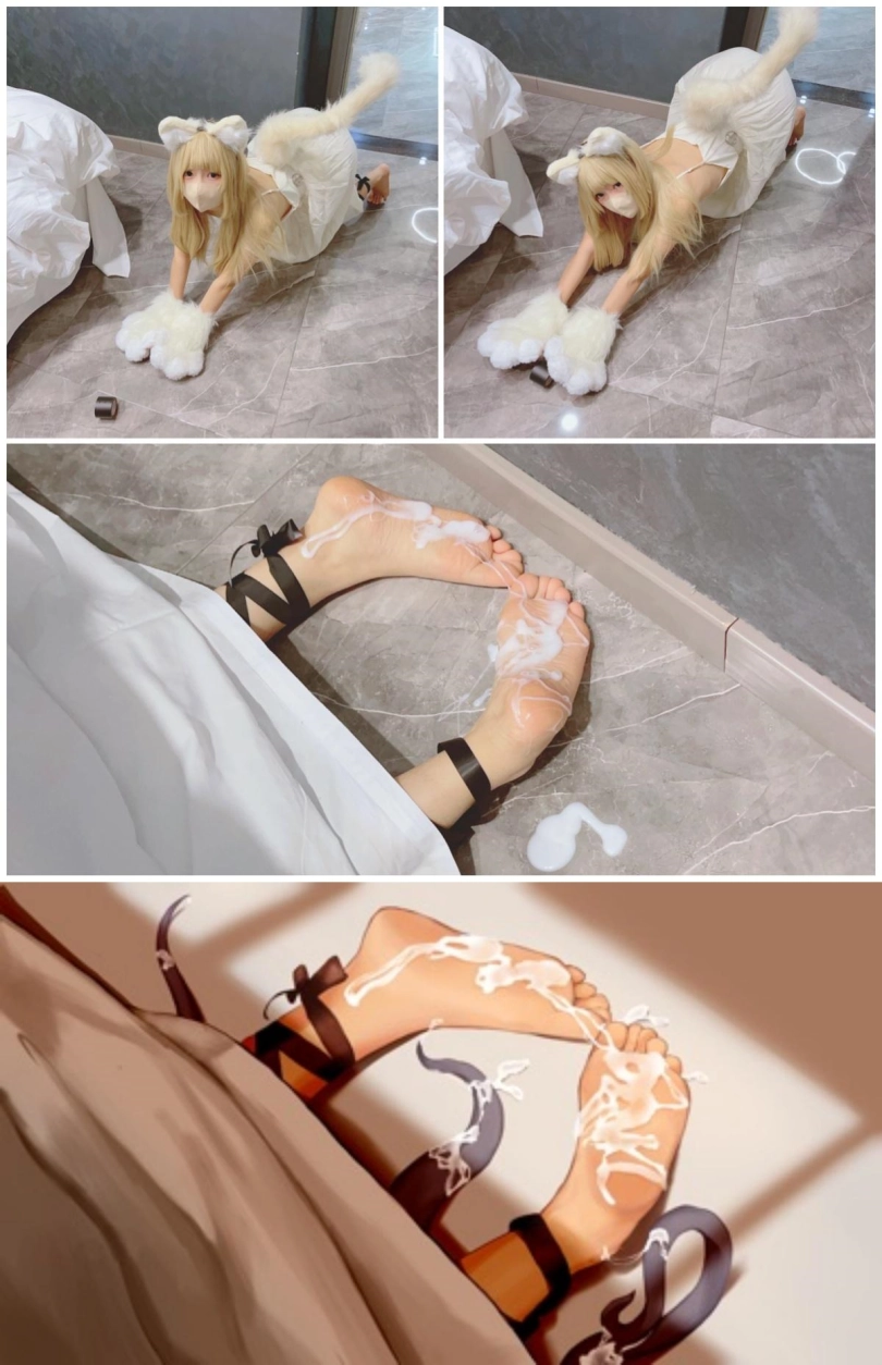 【咕咕精】猫娘黄豆粉cos-猫猫的遇难(冰恋粘液秀足丸吞题材,裸足、仿真j液足j、丸吞)