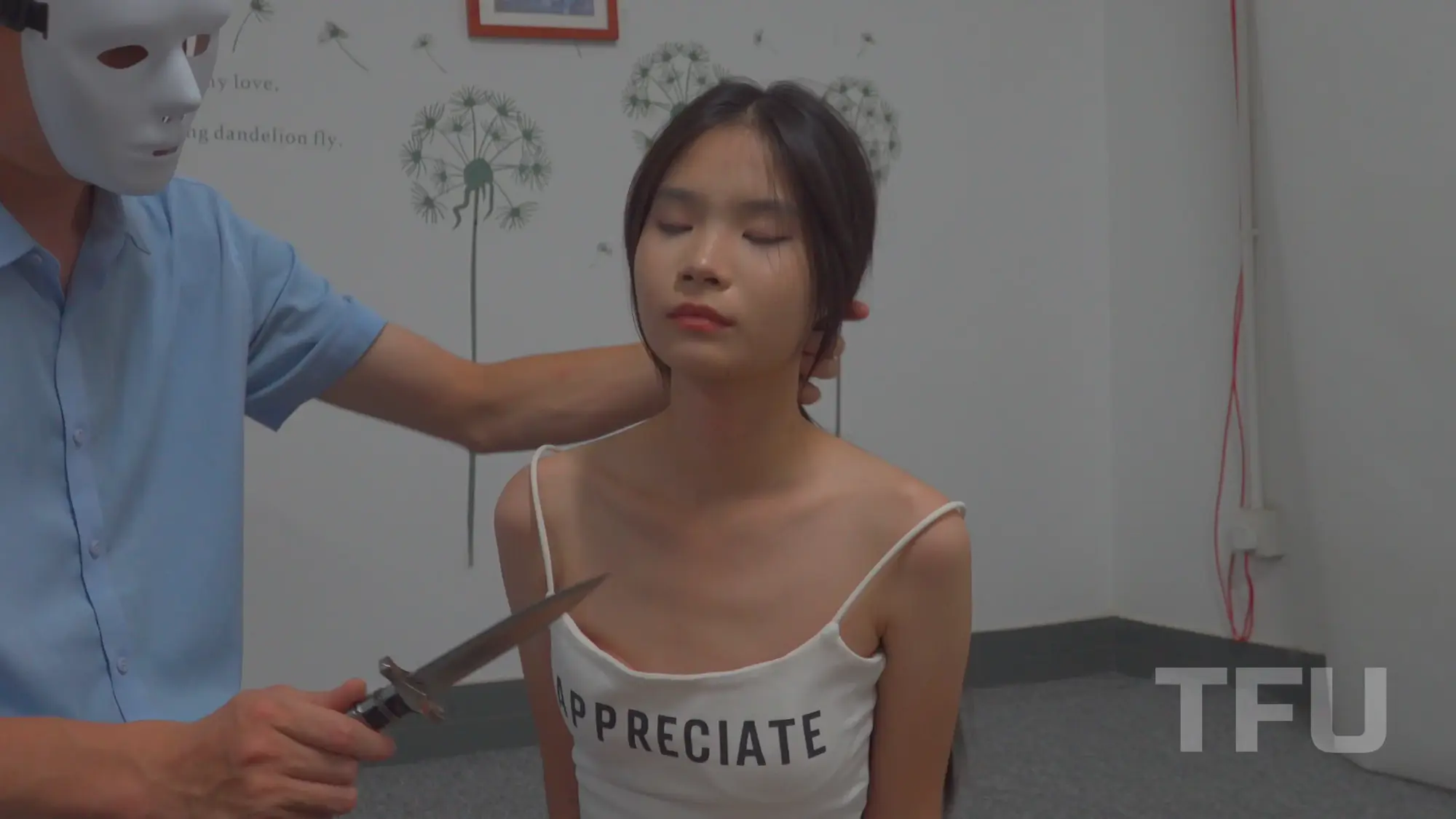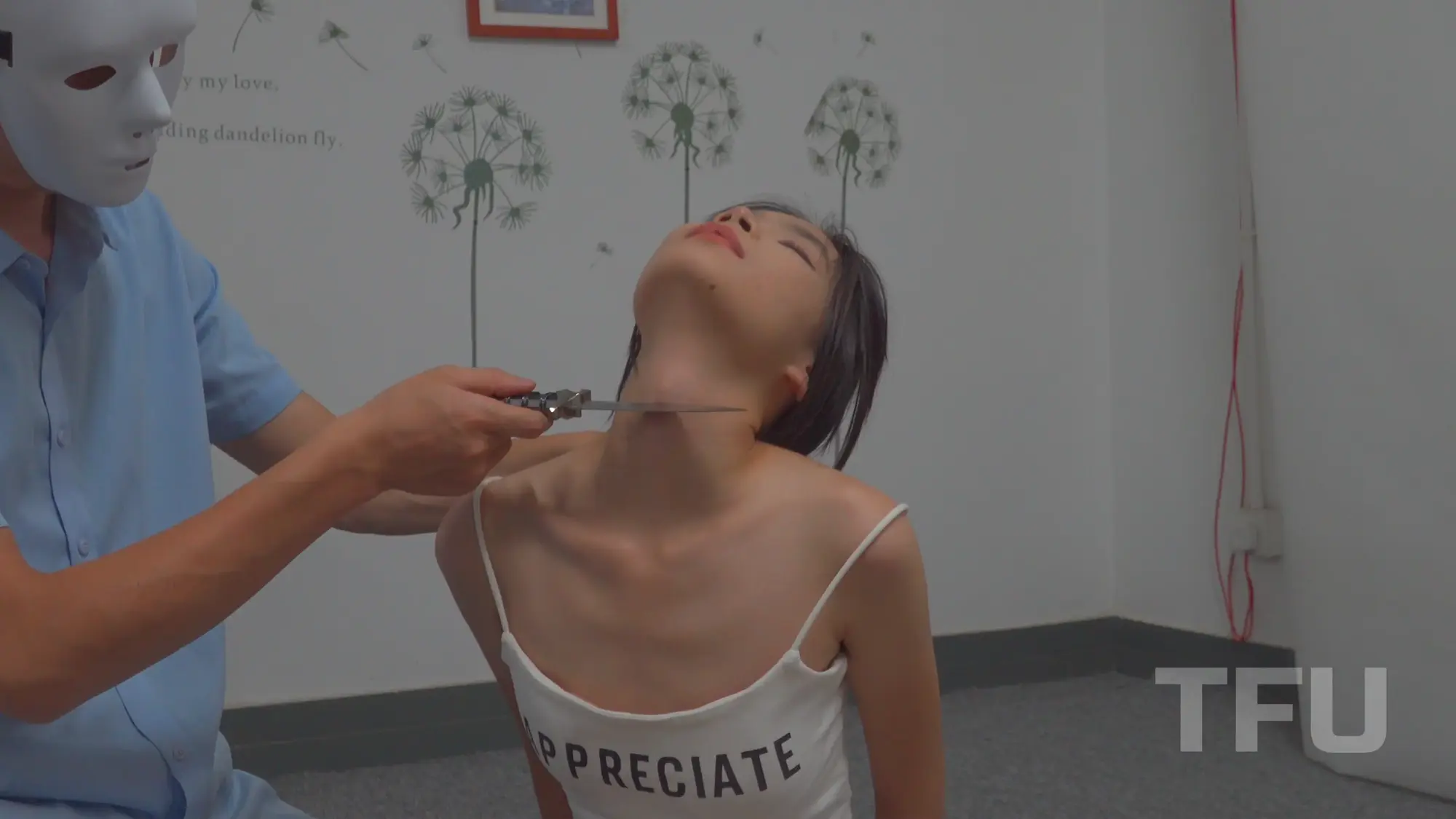 The girls hair is pulled back repeatedly, forcing her delicate neck into full exposure, while various props come into play to explore every angle.There are also some scenes with breath control and strangle